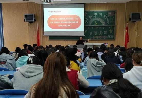 首先杨保河书记从“为什么能够取得中国政权”和“改革开放以来,为什么能取得如此成就”两个问题展开,引出党课主题“中国共产党为什么能”。紧接着,杨书记从远大理想追求、科学理论引领、选贤任能机制、严明纪律规矩、自我革命精神及强大领导能力六个方面向在座参会学生进行详细介绍,让学生们更好地知党、爱党、敬党。正如习近平总书记所说“青年最富有朝气、最富有梦想”,新时代中国青年要树立远大理想、担当时代责任、勇于砥砺奋斗、练就过硬本领、锤炼品德修为,为祖国发展奉献自己的青春力量。就“远大理想追求”这一方面,杨书记提到国家、政党和个人都要有远大理想,作为一名向党积极靠拢的青年学生,要与国家政治决策保持一致,时刻与党的领导看齐,主动服务大局,形成工作合力,不断提升学院整体工作、教学质量和水平。之后杨书记说到,学生党员要始终抓住学习宣传贯彻习近平新时代中国特色社会主义思想这个首要政治任务,紧密结合“不忘初心、牢记使命”主题教育,引导广大学生树牢“四个意识”,坚定“四个自信”,将马克思主义、毛泽东思想、邓小平理论、“三个代表”重要思想、科学发展观和习近平新时代中国特色社会主义思想作为理论引领,坚持正确党史观,提升个人理论水平。党课尾声,全体学生纷纷表示要严格以党员标准要求自己,在今后学业和工作中时刻保持先锋模范作用。
