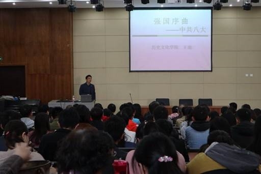下午两点整,报告会正式开始。“欲知大道,必先为史;灭人之国,必先去其史。”意思是,了解历史,就了解了世间大道;把握史学,才把握住社会规律。而要一个民族灭亡,首要方法是让它的史观消亡——践踏民族历史,解构民族文化,涤荡民族自信,破坏民族认同。王老师选取了“强国序曲——中共八大”这一伟大事件来作为切入点,详细讲解了中共八大的历史背景、历史贡献、局限性及历史意义。通过这一事件的讲解,广大党员同志对党的性质、党的奋斗目标等有了更加深刻地认识。历史是最好的老师、最好的教科书,它忠实记录下每一个民族和国家走过的足迹,也给每一个民族和国家的未来发展提供启示。