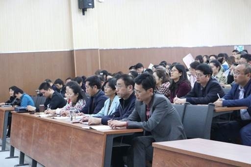 2019年11月5日,数学与统计学院、物理与电子工程学院以及化学化工学院三院合作在尚远楼312教室举办了“不忘初心,牢记使命”党员主题教育专题报告会。特邀历史文化学院的王琼老师为此次报告会的主讲人,出席此次报告会的有三个学院的全体党员以及部分积极分子。