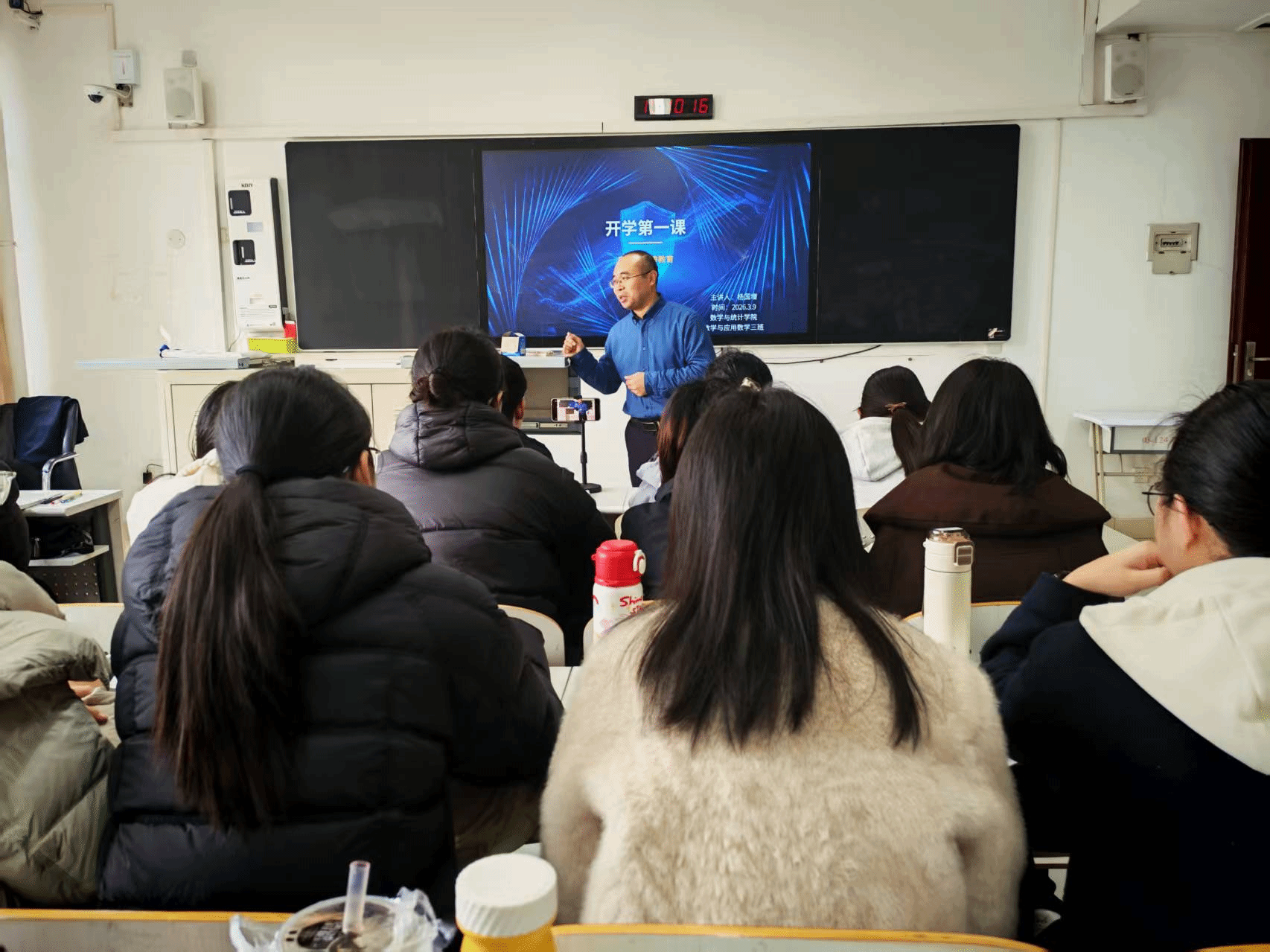 为切实筑牢新学期校园安全防线,强化学生法治意识、安全素养与思想防范能力,全面落实学院学生教育管理工作部署,3月10日,数学与统计学院组织全体德育导师、辅导员,面向各年级各班级召开“开学第一课”主题教育班会,全体学生共同参与学习。