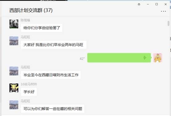 祖国的发展需要一代代青年的奉献和付出,西部需要人才,西部也为人才提供了施展才华的舞台。在疫情防控的特殊时期虽不能面对面为学生答疑解惑,但通过线上交流会,同样拉进了老师与学生的心里距离,传承了学院各届学生“传帮带”的优良传统,更让毕业生收获了满满的正能量,明确了人生方向,树立了正确的职业理想。