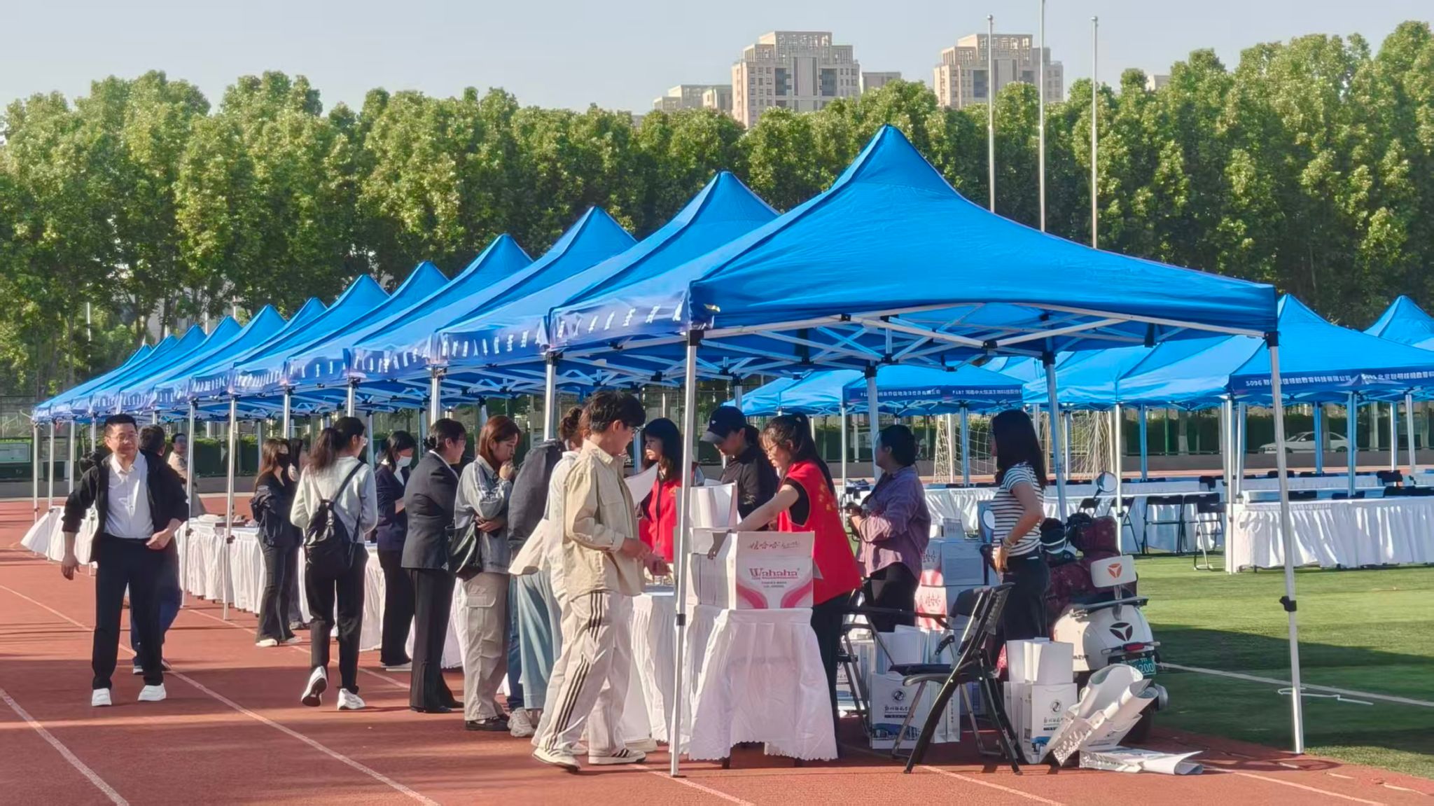 4月17日上午,我校2026届毕业生春季双选会在东校区体育场顺利举办。数学与统计学院高度重视、精心组织,学院领导、专业负责人、专业课教师、今年毕业生以及2027届毕业生共同参与了本次双选会,现场求职氛围热烈,成效显著。