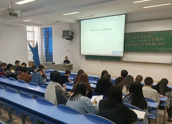 2021年10月12日下午4点,数学与统计学院学习习近平总书记2021七一讲话重要精神专题党课在西校区五阶一教室成功举行。党课讲解人为数学与统计学院杨保河书记,参与人员为学院所有在校生党员。
