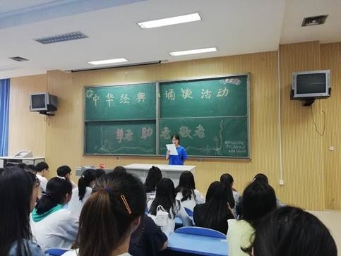 2019年9月24日下午5:20,重阳节朗诵活动于西校区崇信楼五阶二的举行,活动进行的如火如荼,同学们争相发言,用历史典故传递中华民族优秀传统文化,用诗词文化传播经典魅力,用身边示例描绘了一幅幅感人心弦的孝礼图,精彩纷呈。有大家耳熟能详的《弟子规》,有使人潸然泪下的“感动中国十大人物之一”的文章,还有感动世人的伟大母爱的文章等。我院通过上述诵读的形式,让同学们感受到了古典诗词的魅力,加强了大家对传统习俗的了解,增强了大家对老人的敬爱之情,丰富了我们的校园文化生活。